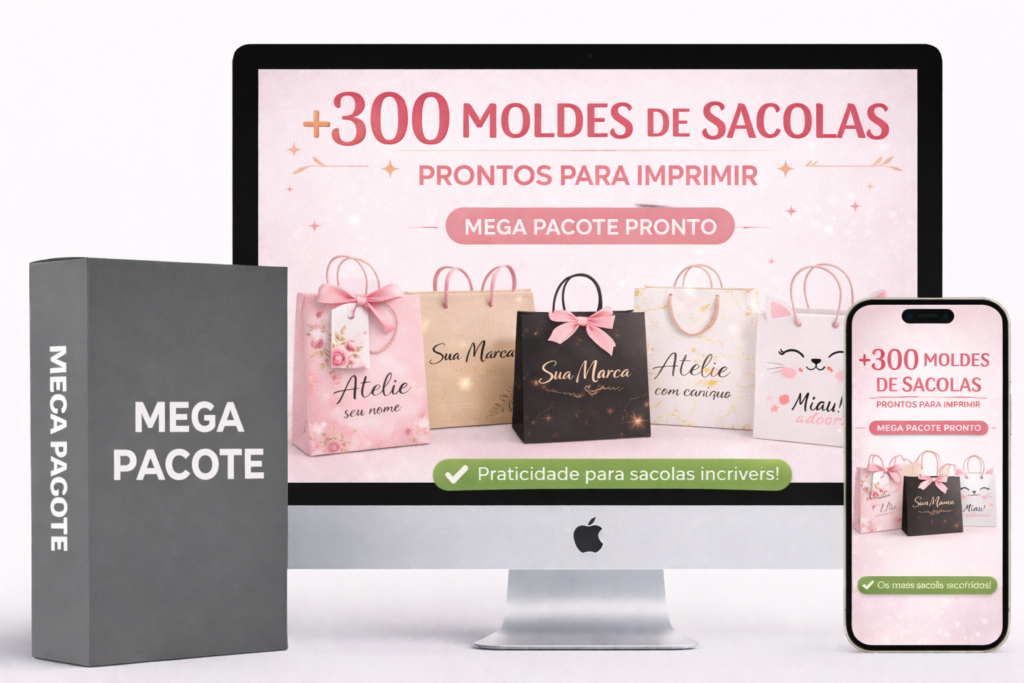 Tenha acesso a moldes prontos em PDF para imprimir e usar imediatamente na sua loja. Economize com gráficas, fortaleça sua identidade visual e encante suas clientes com embalagens profissionais.